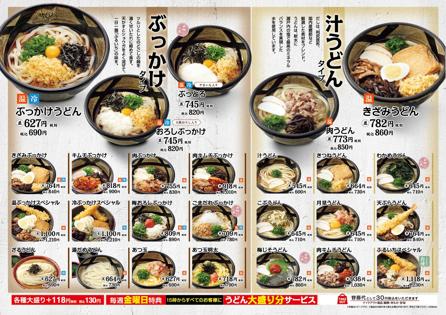 ふるいちの一番だしを使用した天ぷら粉で揚げた「梅しそとり天」「とり天」は、うどんとの相性も抜群です。