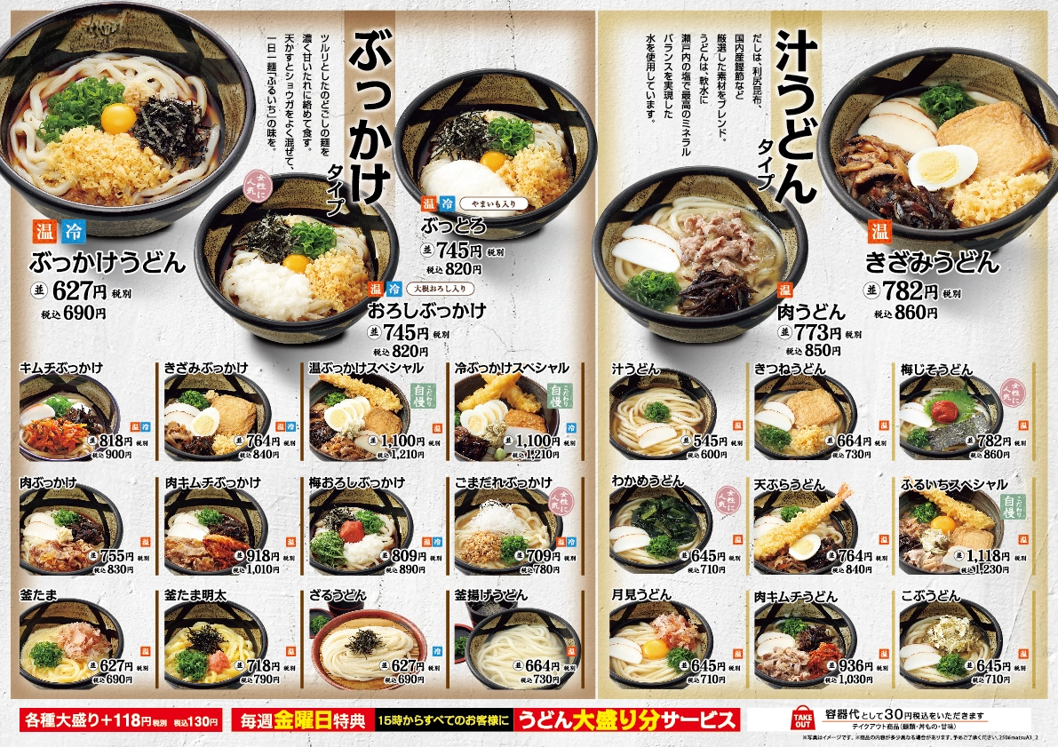 テイクアウトにも対応しておりますのでご自宅でもぶっかけうどんを楽しんでいただけるように様々な形でのテイクアウト商品もご用意しております。