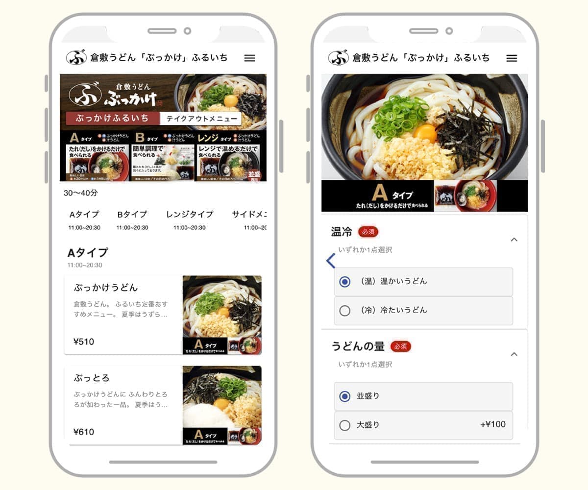 Aタイプ温うどんのみ、お客様のご来店を確認してから調理をさせていただいております。