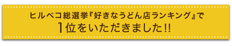 好きなうどん店ランキング 岡山編 2023年6月15日(木)にKSB瀬戸内海放送「ヒルペコ」の番組内で地元の方々の投票で順位が決まる人気のコーナー「ヒルペコ総選挙『うどん編』」にて紹介していただきました。