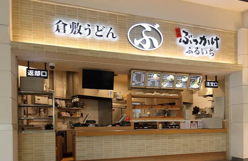 ぶっかけふるいち イオンモール倉敷店は、倉敷市水江エリアのイオンモール倉敷2Fフードフォレスト内にあります。