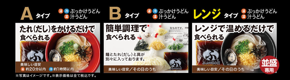 Aタイプ温うどんのみ、お客様のご来店を確認してから調理をさせていただいております。